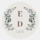 Personalize este adesivo maravilhoso com as suas iniciais e data usando os modelos fornecidos. Apresentando flores e folhas pintadas de aquarelas em tons azuis neutros. As possibilidades deste adesivo são infinitas! Enrole uma fita em volta do seu convite de casamento e use este adesivo para segurá-la, sele seus envelopes com isso para dar um detalhe personalizado extra, ou use-o em sua embalagem de favor para seus eventos de casamento e festas. Este adesivo coordena-se lindamente com a nossa coleção de convites de casamento "Garden Crest" em Eggshell. Certifique-se de verificar todos os outros produtos de coordenação oferecidos nesta coleção visitando-a hoje!