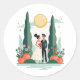 Inclui 20 pequenos adesivos numa única folha. Cartazes deliciosos, com tema de casamento, com um casal cercado por verde e flores sob um céu ensolarado, perfeito para casais e casamentos.