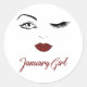 Adesivo Redondo Garota de janeiro veste Lábios vermelho bonitinho