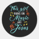 Adesivo Redondo Garota do Tema Musical Cristã de Jesus e Música