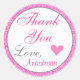 Garota e brilho branco e rosa quente brilham a princesa "Obrigado", típico adesivo redondo. Você pode adicionar facilmente o nome de sua escolha e alterar a cor e a fonte usando a opção personalizar!