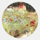 Adesivo Redondo Garota no Vinheta de Pintura do Jardim