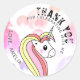 Adesivo Redondo Garota rosa-branca do Unicórnio Obrigado Festa de
