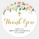 Adesivo Redondo Garota Rosa Floral Primeira Comunhão Obrigado Stic