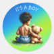 Adesivo Redondo Garoto Africano-Americano com Chá de fraldas Ursin