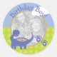 Adesivo Redondo Garoto de aniversário do dinossauro púrpura com fo