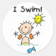 Uma figura de vareta de menino natação com o peixe e o sol sorri sobre ele neste bonitinho e colorido garoto que é personalizável para que você possa adicionar um nome