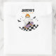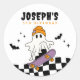 Celebre o aniversário do seu filho Halloween com este adesivo divertido e assustador com um fantasma legal a andar de skate. Perfeito para favoritos para festas, tratar bolsas ou decorações com uma vibração lúdica de Halloween.