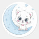 Gatinho Adorável Sobre o adesivo redondo clássico da lua
