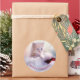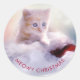 Adesivo Redondo Gatinho Bonito Descansando em um Papai Noel Feliz