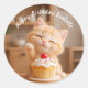 Adesivo Redondo Gatinho-de-laranja-bonito com um Cupcake