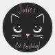 Perfeito para a sua festa de aniversário temática de gatinho - rosto bonito de gatinho com olhos grandes em adesivo preto escuro pode facilmente personalizar com mensagem pessoal ou nome de criança de aniversário.