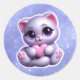 Adesivo Redondo Gato bonito com autocolante cardíaco
