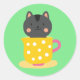 Adesivo Redondo Gato bonito na caricatura do teacup na menta
