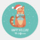 Adesivo Redondo Gato Bonito No Feriado De Inverno De Natal