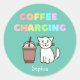 Adesivo Redondo Gato Branco Bonito e Café Engraçado Cafeína Rainbo