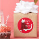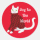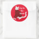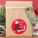 Adesivo Redondo Gato branco bonito, vermelho doce de Natal