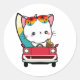 Adesivo Redondo Gato branco engraçado está dirigindo para a praia