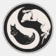 Símbolo Yin Yang com um cão e um gato nos espaços claros e escuros. Gráfico preto e esbranquiçado, em t-shirts, suores, cartas e presentes.
