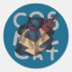 Um desenho engraçado de um gato astronauta, vestindo um capacete e explorando o espaço em seu foguete de caixa de papelão, texto que diz: Gato Cósmico