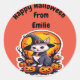 Adesivo Redondo Gato de bruxa bonito com abóbora