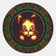 Adesivo Redondo Gato de Dia das Bruxas Amarelo Verde Laranja Brilh