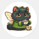 Um gatinho de fada bonitinho no bebendo de suéter confortável sua xícara favorita de chá.