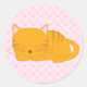 O adorável design apresenta uma doce ilustração de um gatinho de mesa laranja tirando uma soneca em um corações rosa ou azul giro e um padrão de pata.