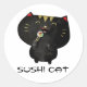 Adesivo Redondo Gato de Sushi Preto Kawaii Cute