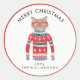 Vestido de Natal de inverno engraçado com um gato vestindo óculos vermelhos e um doce nórdico de Natal "Feio". Na verdade, achamos que ele é preferencialmente fofo! Adicione seu texto personalizado acima ou deixe Feliz Natal. . . adicione seu nome abaixo. Faz o adesivo de Natal perfeito para presentes e cartões para amantes de gatos.