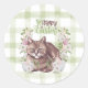 Um adesivo de gato fofo da Páscoa com um gatinho adorável cercado por flores de primavera, em um charmoso fundo xadrez verde. Este design doce traz cores pastéis suaves e vibrações alegres de primavera. Perfeito para adicionar um toque de magia da Páscoa aos seus itens do dia a dia.