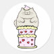 Adesivo Redondo Gato gordo engraçado pulando de um bolo