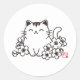 Adesivo Redondo Gato japonês bonito e Sakura com Carimbo Neko