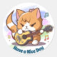 Adesivo Redondo Gato Laranja Fofo Tocando Violão