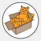 Adesivo Redondo Gato Laranja numa Caixa Engraçado