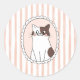 Listras laranja suaves e discretas criam um fundo quente e aconchegante para este adesivo de gato fofo apresentando um gatinho fofo sentado no centro. A paleta de cores suaves dá ao design uma sensação calma e estética, enquanto ainda destaca a ilustração felina divertida. Perfeito para decorar laptops, garrafas de água, cadernos, planejadores, capas de telefone e diários, este adesivo adiciona um toque sutil de personalidade sem ser muito brilhante.