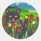 Adesivo Redondo Gato negro entre as tulipas