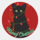 Adesivo Redondo Gato negro Luzes vermelhas de Natal