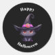 Adesivo Redondo Gato preto bonito Vestindo o Dia das Bruxas
