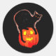 Adesivo Redondo Gato Preto do Halloween no Pumpkin Laranja Brilhan