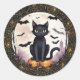 Adesivo Redondo Gato Preto na Pumpkins e Bats Halloween Sticker