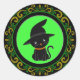 Adesivo Redondo Gato Preto Verde Amarelo Com Halloween De Bruxa