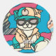 Adesivo Redondo Gato Retroativo da Rua Relaxada | Engraçado