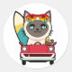 Adesivo Redondo Gato siamês engraçado está dirigindo para a praia