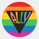 Este design de suporte a orgulho gay apresenta o texto do arco-íris "aliado" em um triângulo.