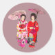 Adesivo Redondo Geisha bonitinha japonesa com quimono rosa