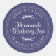 Adesivo Redondo Geléia Caseira Rústica de Mirtilo Enlatada Azul Es