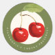 O rótulo clássico e elegante apresenta um design moderno de cerejas vermelhas com texto personalizável exibido em uma faixa circular verde. Mostrado com uma mensagem caseira personalizável do "doce de cereja" do cozinheiro apresentada em fonte moderna em uma borda circular complementar, você pode personalizar usando os campos fornecidos. Ideal para rotular sua geléia caseira, compotas ou geleias, ou usar para cozinhar, enlatar, presentes de cozinha caseiros ou decoração.