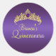 Adesivo Redondo Gem Tiara Quinceanera Dourada e Roxa