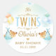 Adesivo Redondo Gêmeos Bebês Meninos Ursinhos Fofos Balões Chá de